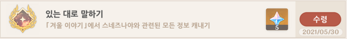 3번의 겨울이야기 퀘스트 완료 후 있는 대로 말하기 업적 획득!!