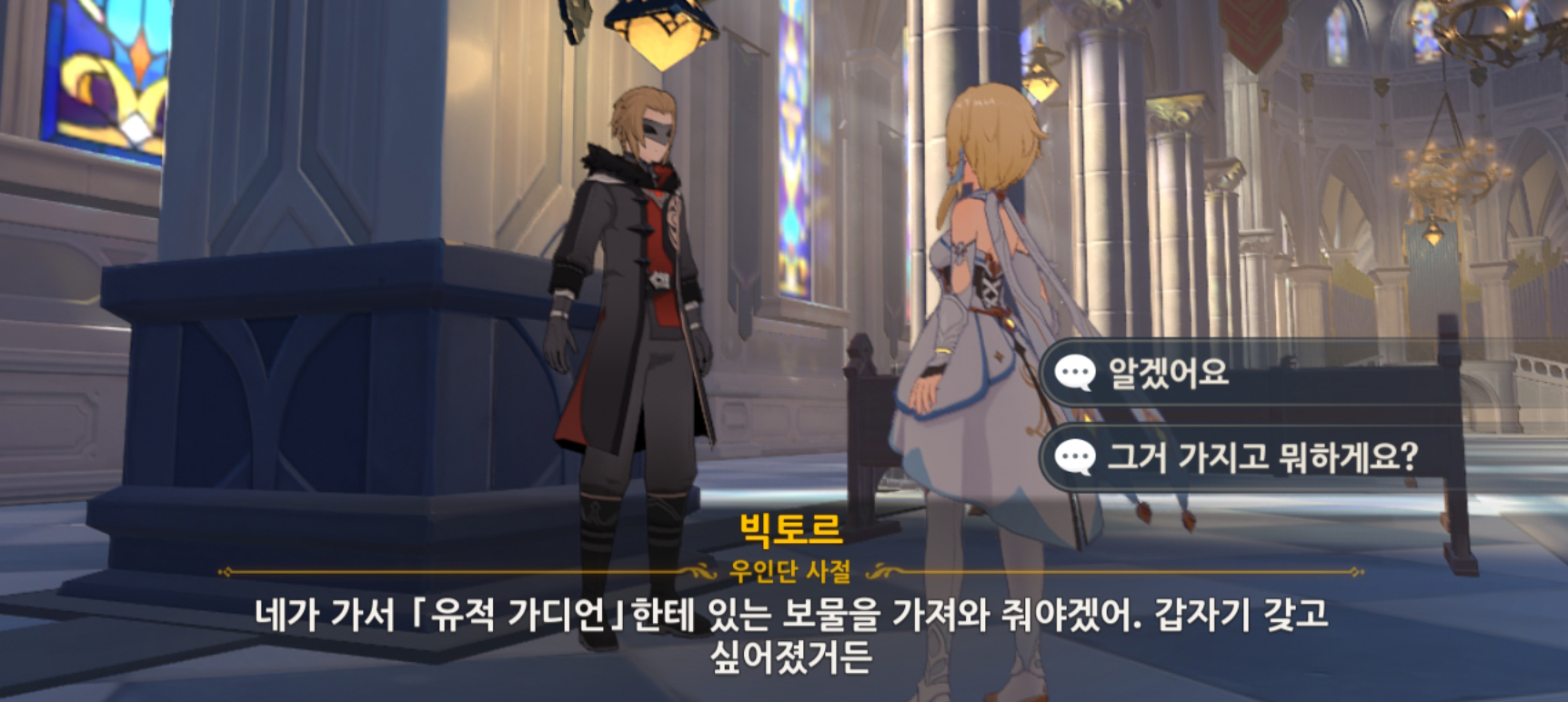 위치는 몬드의 성당 내부. 빅토르에게 말을 걸어봅시다.